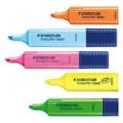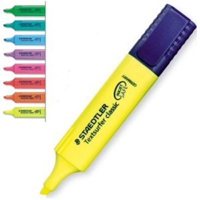 Marcador STAEDTLER TOP STAR Nº364 con depósito grande de tinta para un destacar extra-largo. Tinta de pigmento rápida como la luz. Para papel, fax y copias de papel inkjet. Secado rápido. Fácilmente lavable de la mayor parte de textil. Con clip y